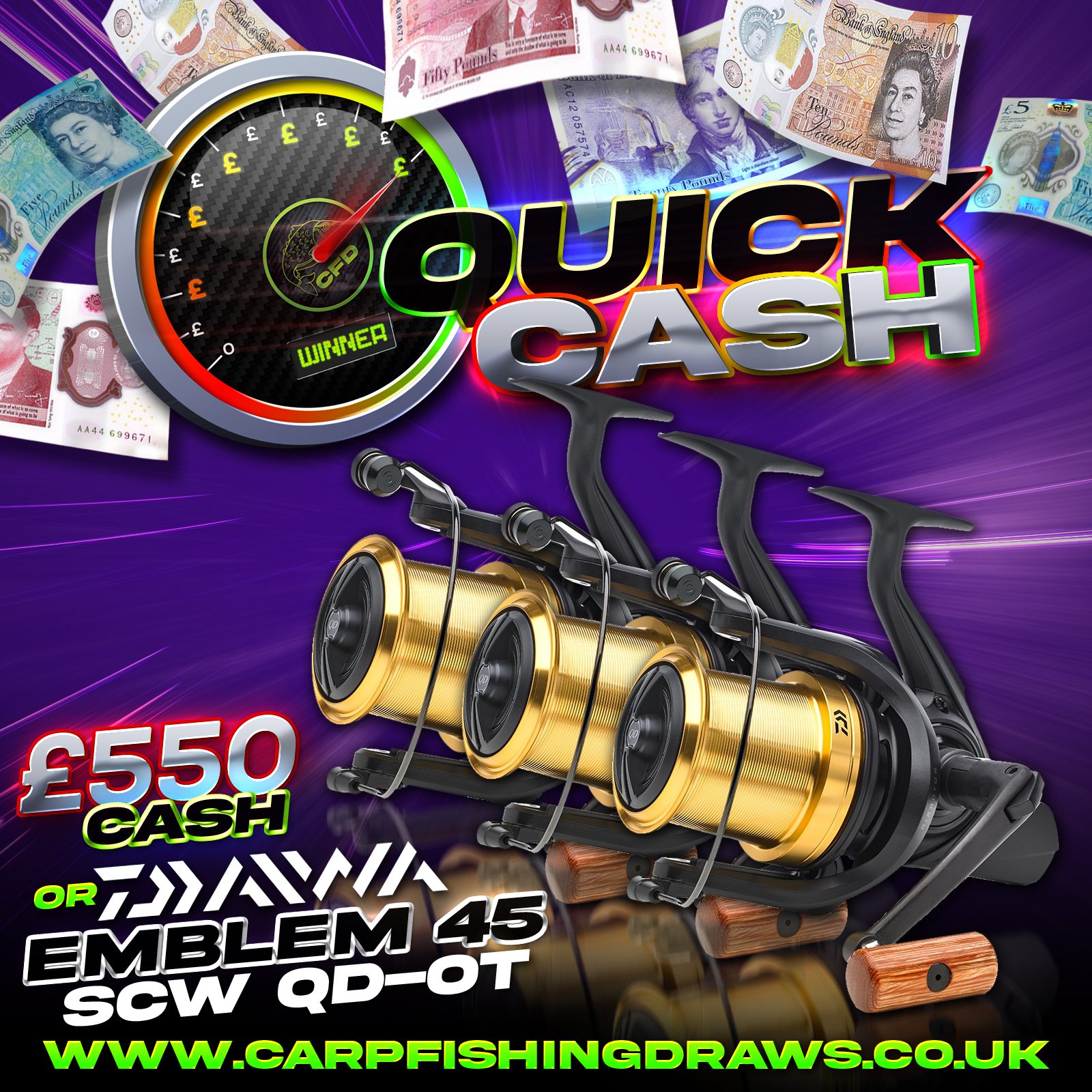 The live draw will take place on the Carp Fishing Draws Facebook page using Google’s random number generator to select the winning ticket number from all Entrants.