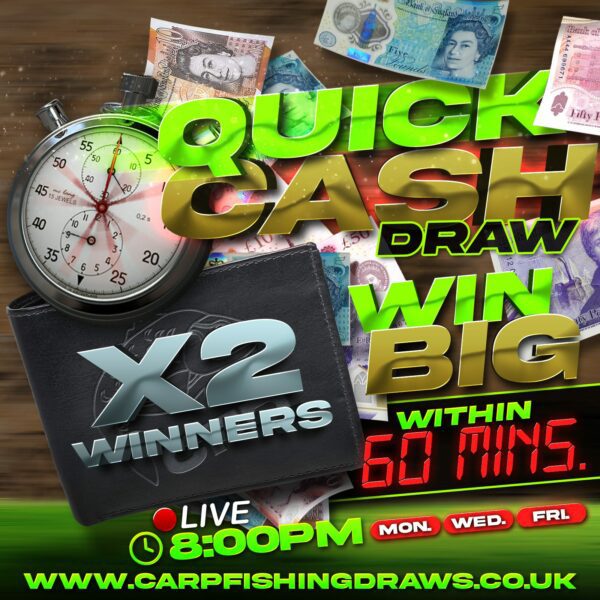 The live draw will take place on the Carp Fishing Draws Facebook page using Google’s random number generator to select the winning ticket number from all Entrants.