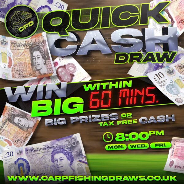 The live draw will take place on the Carp Fishing Draws Facebook page using Google’s random number generator to select the winning ticket number from all Entrants.