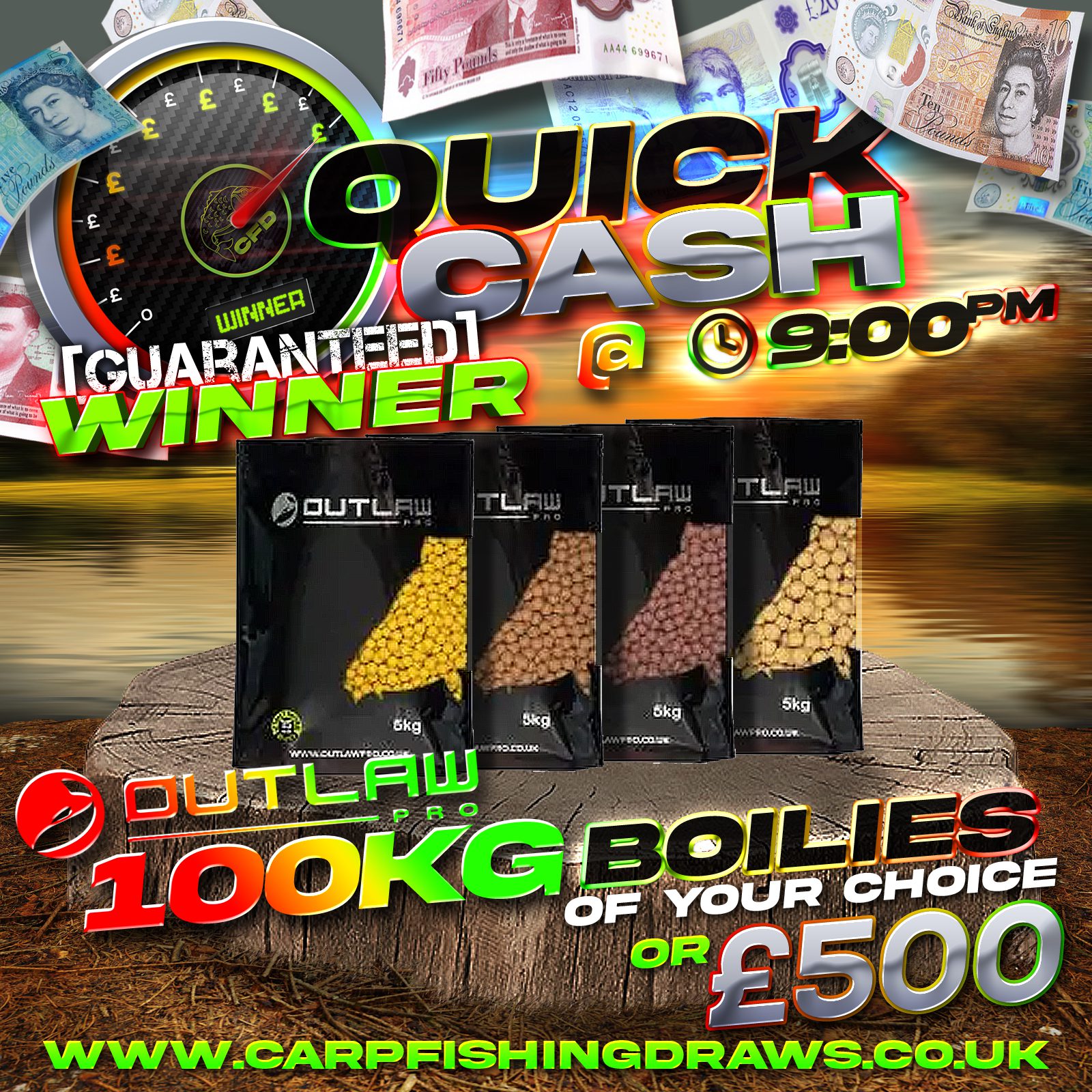 The live draw will take place on the Carp Fishing Draws Facebook page using Google’s random number generator to select the winning ticket number from all Entrants.