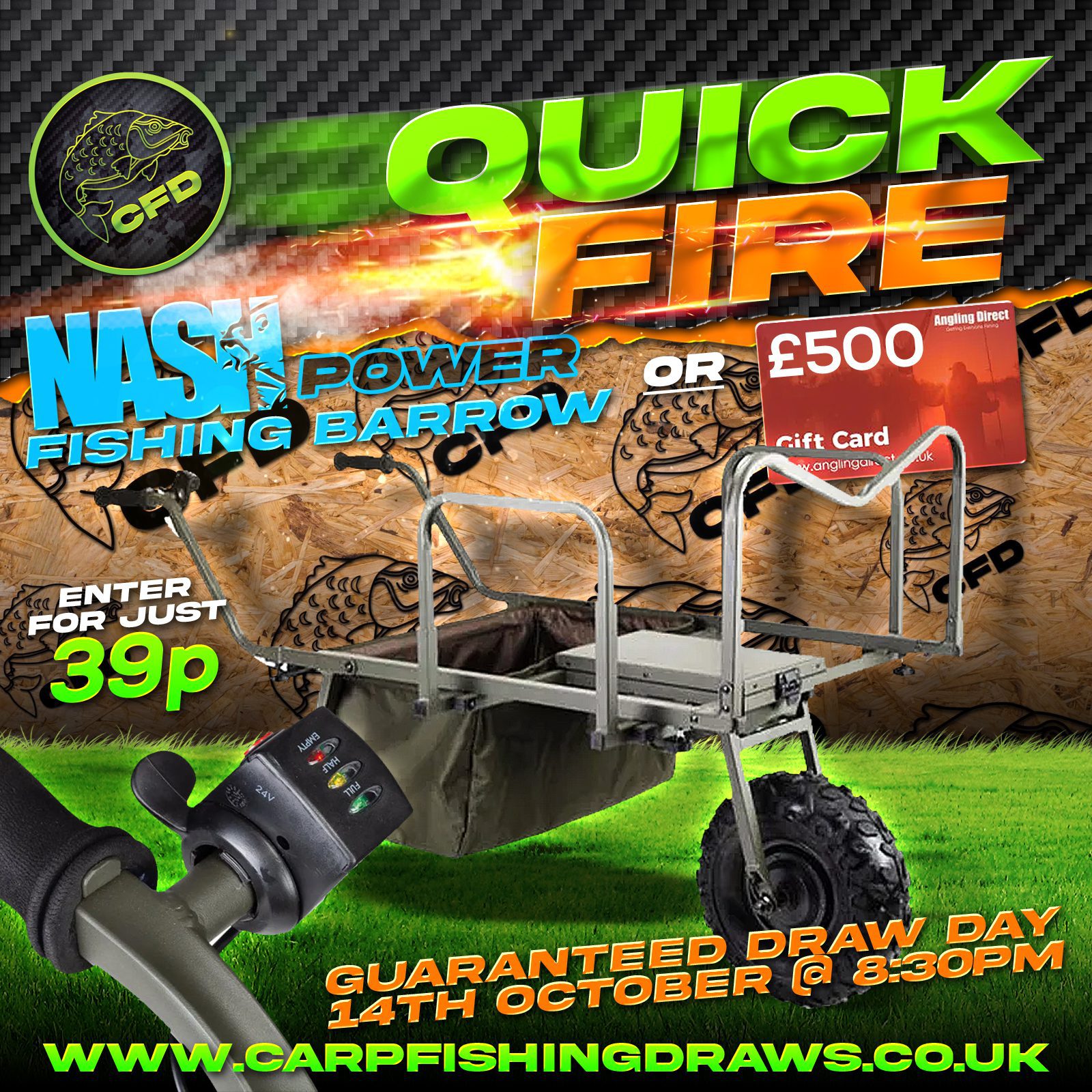 The live draw will take place on the Carp Fishing Draws Facebook page using Google’s random number generator to select the winning ticket number from all Entrants.