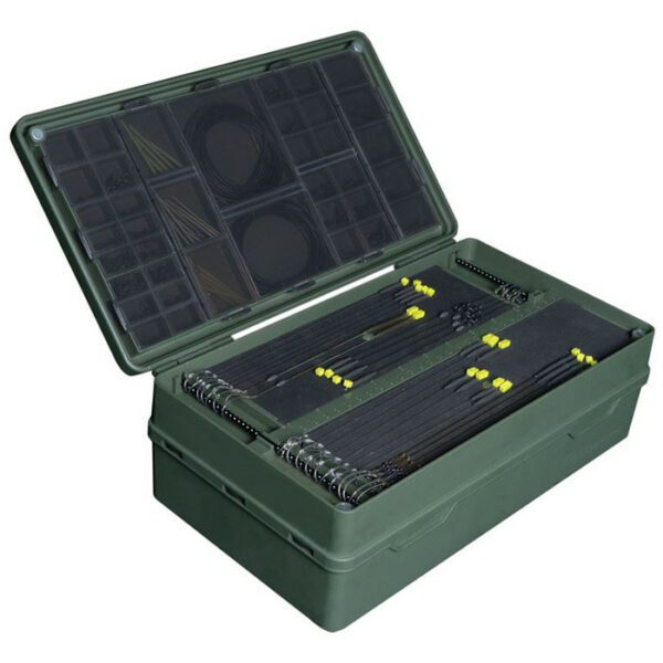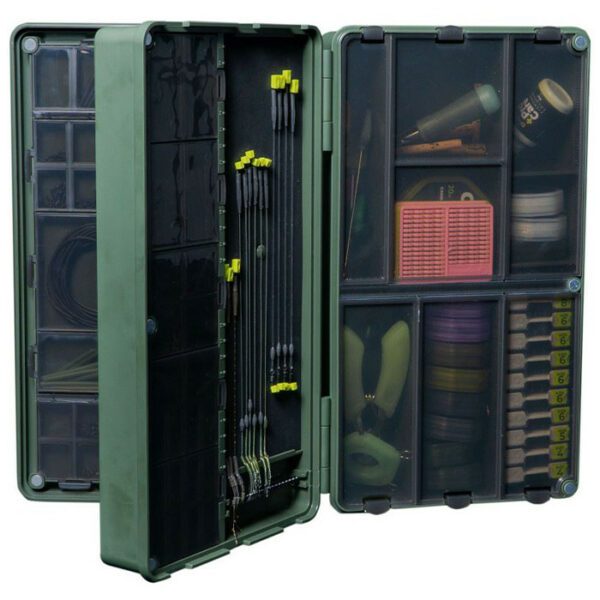 RidgeMonkey Armoury Pro Fishing Tackle Box, Introducing the RidgeMonkey Armoury Pro Fishing Tackle Box – the ultimate storage solution for serious anglers. Made from robust ABS and polypropylene, this tackle box is built to last. It features a strong magnetic lid, three large rig boards, and 67 storage compartments – perfect for organizing your tackle. The lid is also marked with ruler markings, so you can easily measure your lines and rigs. Plus, it comes with 45 single and 30 double rig pins – giving you everything you need to create the perfect set-up. Whether you’re a beginner or a pro, the RidgeMonkey Armoury Pro Fishing Tackle Box has everything you need to hit the water with confidence. So don’t wait any longer – get your hands on one today!