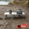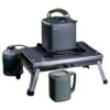 A simple and direct interface features a straight-forward ignition button and gas control knob, allowing you to finely adjust the size of the flame (and therefore temperature) you require for precise cooking. A pre-heat pipe wraps around the burner to ensure the unit performs efficiently, especially in low temperatures, by optimising gas vaporisation. When combined with the EcoPower USB Heated Gas Canister Cover (sold separately) the gas is gently warmed up to provide optimal fuel efficiency, making the most of every last drop β even in the coldest conditions. Ideal for use on a tabletop, bench or shelf, the rubber feet on the folding legs help the unit to stay firmly in place and protect delicate surfaces. A rubber-capped pan support ensures that your cookware remains securely in the optimal position at all times, sitting within an easy-to-clean recessed drip pan. Dual rubber-gripped handles on the sides allow the unit to be moved easily whilst in use, whilst being able to slide out or tuck away neatly when not required. A side table simply slots on to either end of the CookStation, depending on your preference and space requirements, offering a robust, flat and clean extended surface for storage or food preparation.