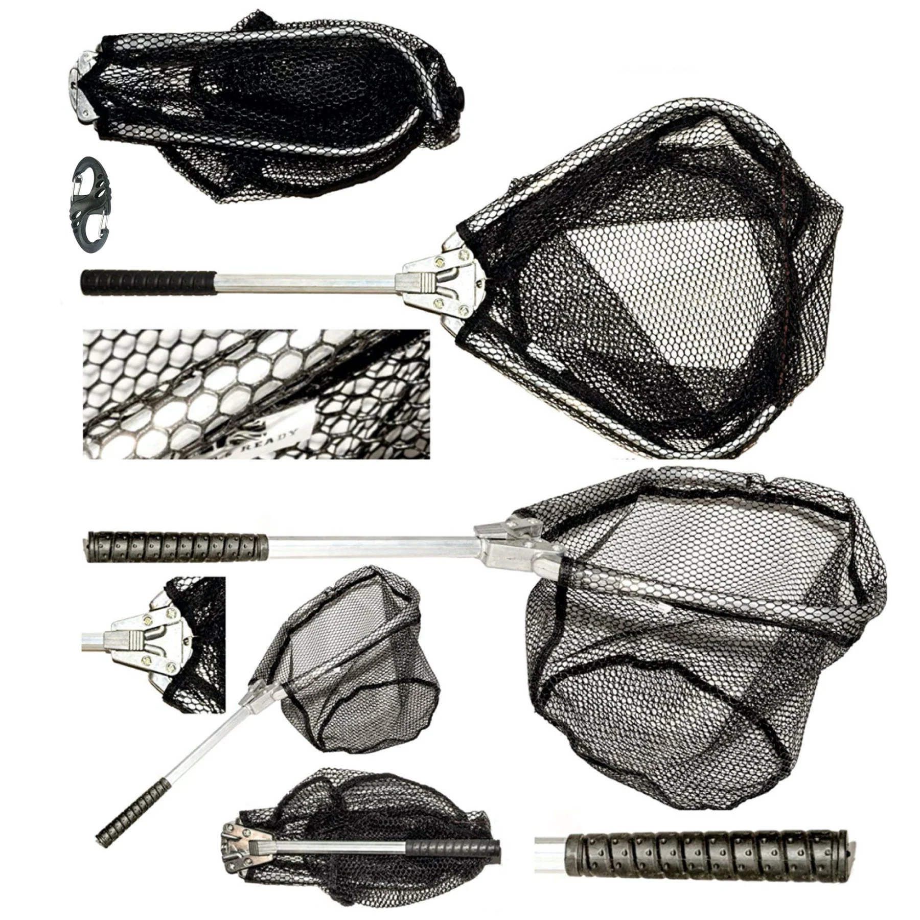 EASY TO CARRY. Weighs only 250g. The S carabiner ensures the folded may clips onto your belt or bag, ready to be unfolded quickly to protect your fish.