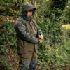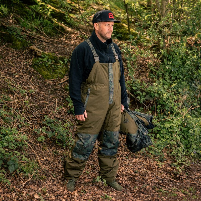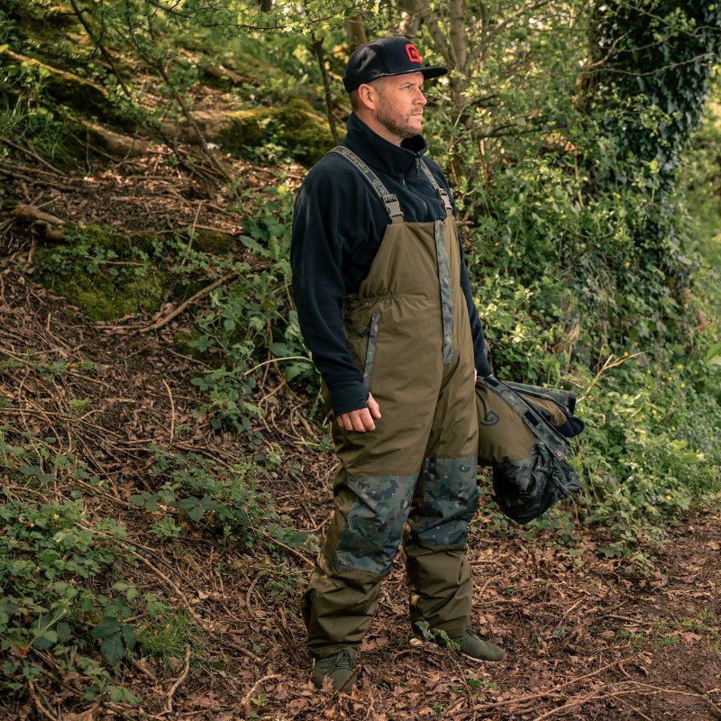 Trakker CR 3 Piece Camo Winter Suit, a high performance jacket, bib and brace set designed to keep you warm and dry in rough weather.Manufactured from a high quality 5,000mm Hydrostatic Head fabric, and with fully taped seams throughout. With an adjustable hood and hem and reinforcement across the knee section giving them extra protection from wear and tear. Both the Jacket and bib and brace set are also fully insulated to ensure you remain comfy in colder conditions.