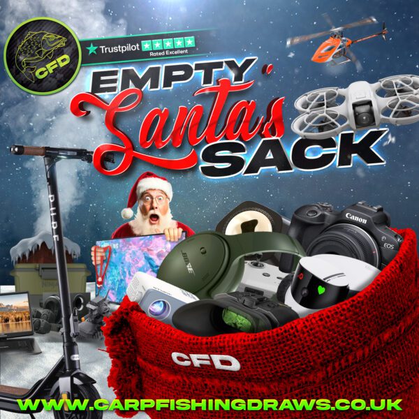 The live draw will take place on the Carp Fishing Draws Facebook page using Google’s random number generator to select the winning ticket number from all Entrants.