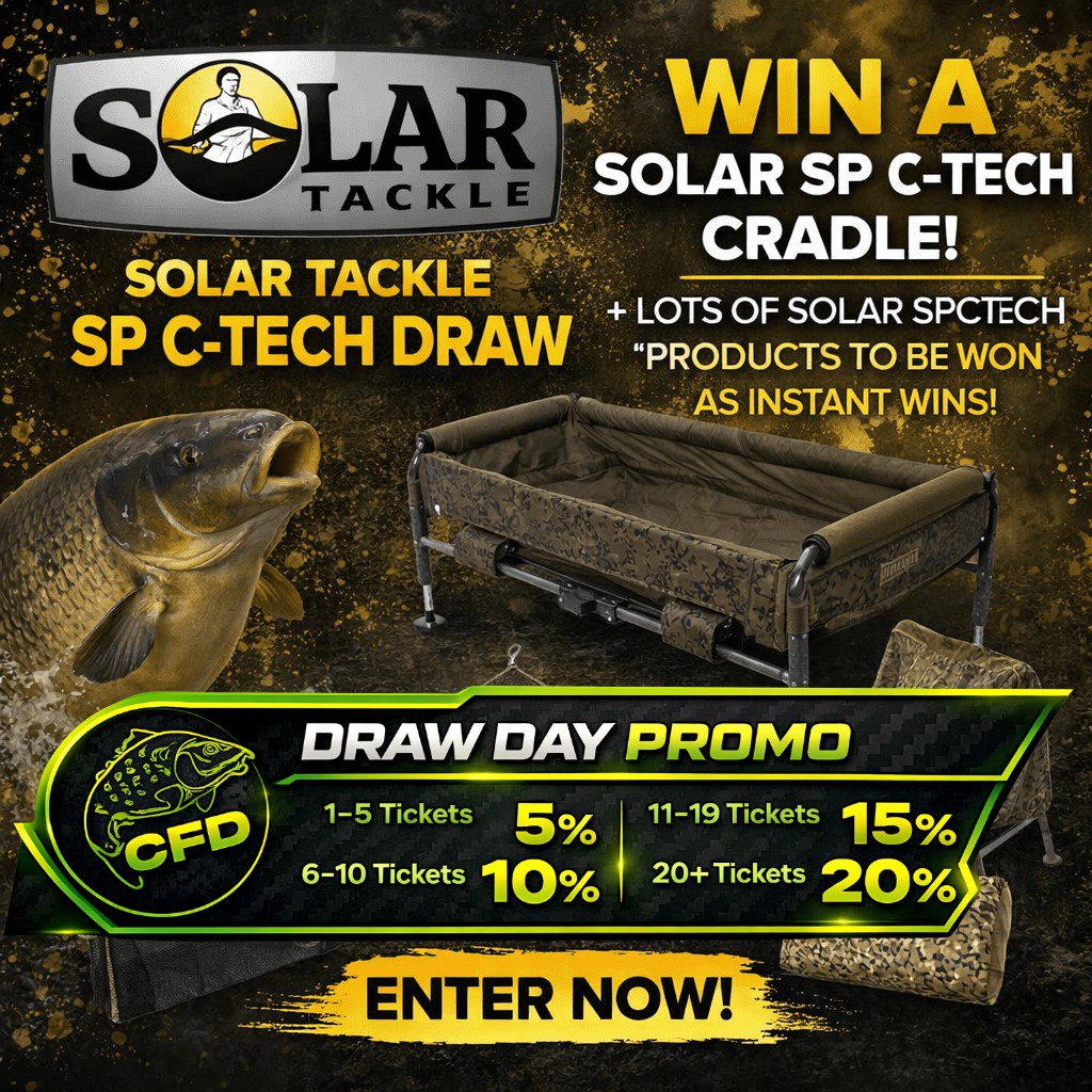 The live draw will take place on the Carp Fishing Draws Facebook page using Google’s random number generator to select the winning ticket number from all Entrants.