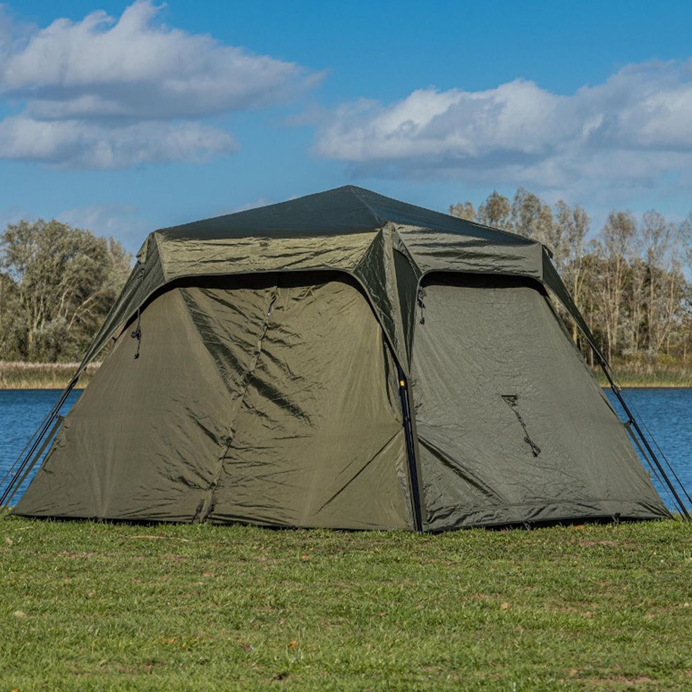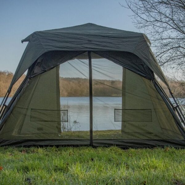 Solar SP Quick-Up Shelter Green MKII With Heavy Duty Groundsheet, The Solar Tackle SP Quick-Up Shelter MKII, upgraded and revamped and now including a heavy duty rip-stop groundsheet. An ultra versatile bankside shelter offering enough space to house up to two anglers, or one angler on longer sessions. Alternatively it also makes an ideal social shelter for cooking and dining away from your swim and bivvy. With a twin layered roof to reduce condensation and two doors that can be left open in warmer weather to increase airflow. They also feature the Solar Climate Control Vent System that traps warm air in winter, and increases airflow in winter. A dedicated extended overwrap is available separately.