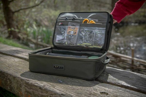 – Rigid, moulded top for use as a bivvy table/rig-tying station