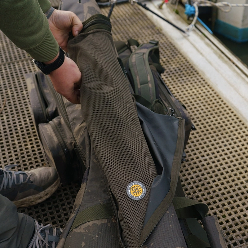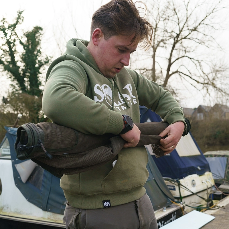Solar Tackle Worldwide Retention Slings are ideal for the safe keeping of fish for weighing and photography. Featuring an easy-flow mesh for fast drainage and double-zipped main compartment with Houdini clip. With a small pocket with retention cord with 3/8 BSF thread and large metal loop for bank-side attachment. The retention cord includes reflective tape sections, for increased visibility at night. Available in standard and x-Large size options.