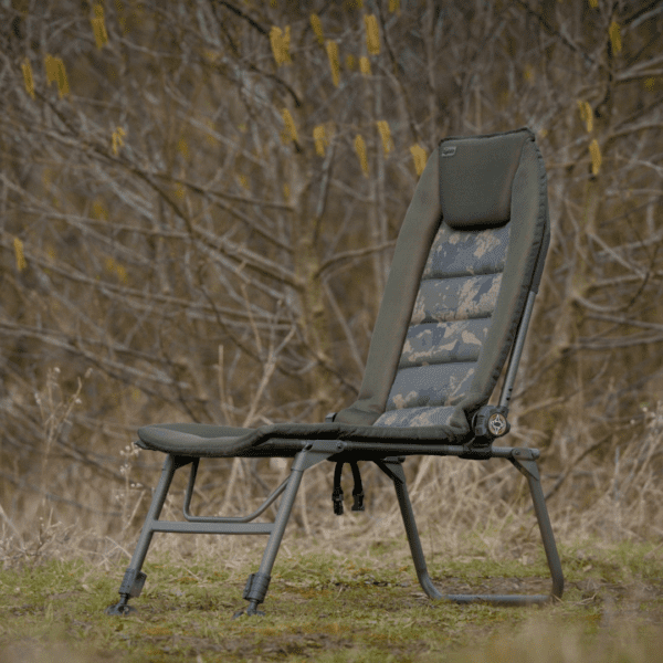 Solar South-Westerly Pro SuperLite Recliner-Chair has the leg-Loc clips keep the legs firmly in position once set up, so no risk of collapse in use, and the padded mattress with our UnderCover camo pattern and green edges provides a comfortable perch for as long a session as you choose.