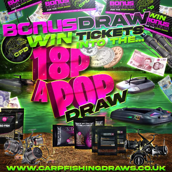 The live draw will take place on the Carp Fishing Draws Facebook page using Google’s random number generator to select the winning ticket number from all Entrants.