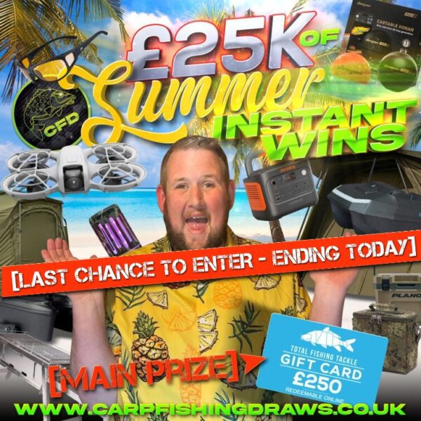 Every ticket is automatically entered for the chance to win Instant Win Prizes, as well as the end draw for a £250 Total Fishing Tackle Voucher