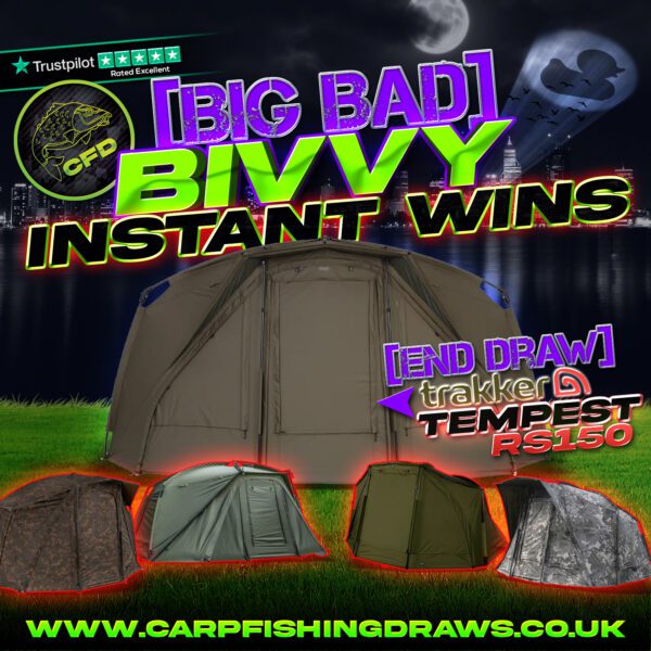 You may enter the competition online or for free by post by sending your entry to Carp Fishing Draws on a postcard. You must have an account on Carp Fishing Draws for your entry to be processed. All details on your entry MUST correspond to the details on your account to receive the order confirmation and ticket number. Postal entries received without a registered account cannot be processed.