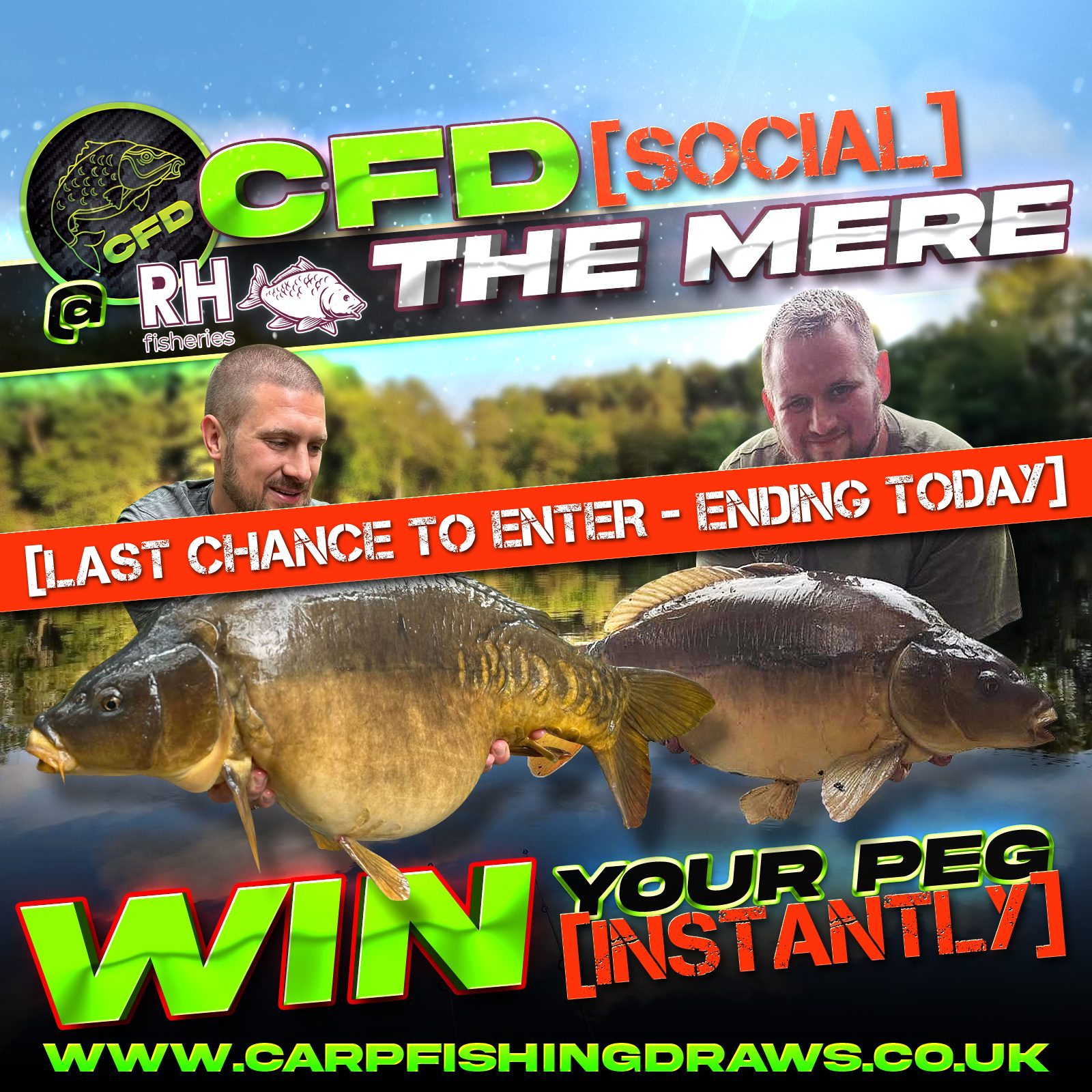 The live draw will take place on the Carp Fishing Draws Facebook page using Google’s random number generator to select the winning ticket number from all Entrants.