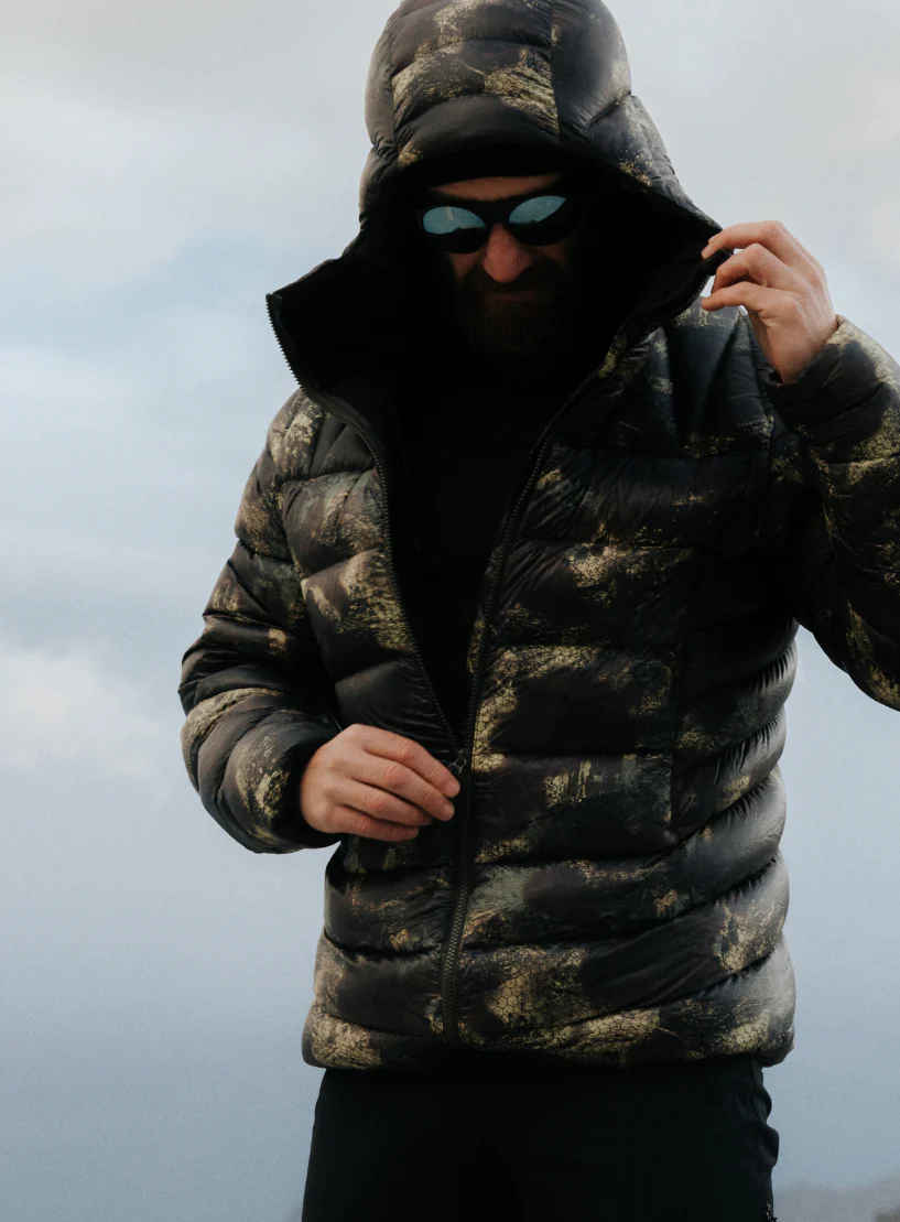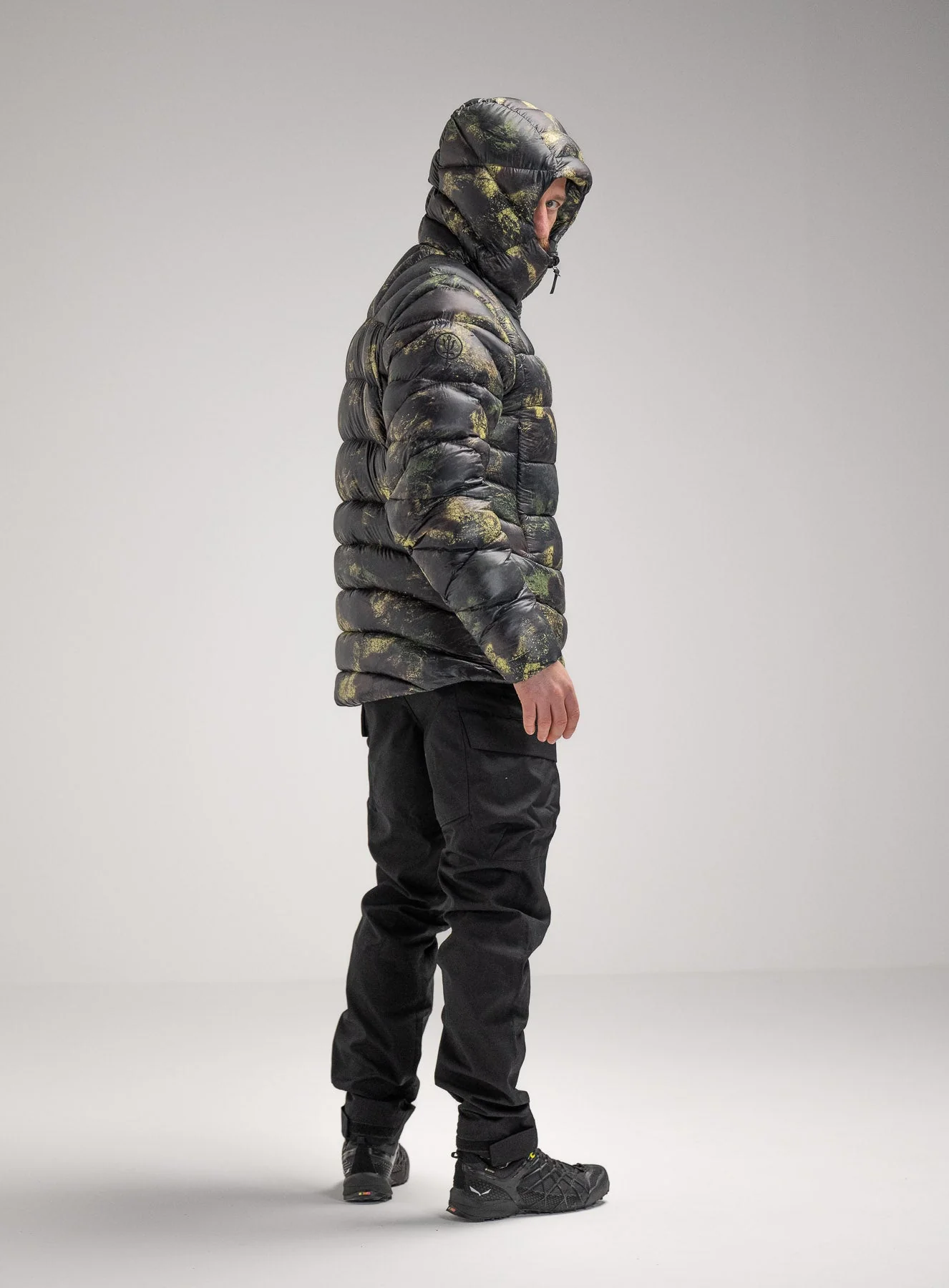 In terms of features, the Bastion Jacket has a centre front zip with Hypalon zip pull, a zip guard at the top of the jacket prevents irritation when fully zipped. Several pockets offer ample storage capacity for expedition essentials from invisible hip pockets, two large internal stash pockets and a left hand side internal zip pocket. The hood features dual adjustment allowing it to be cinched tight for maximum protection in high winds and an anchored adjustable hem allows the same to minimise heat loss. Baffles have been specifically designed to optimise insulation around the body’s core whilst maintaining breathability around the arms. The Bastion Jacket also features a totally unique ThruDark camouflage designed by our in-house team.