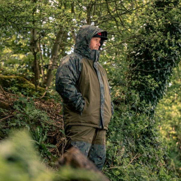 Trakker CR 3 Piece Camo Winter Suit, a high performance jacket, bib and brace set designed to keep you warm and dry in rough weather.Manufactured from a high quality 5,000mm Hydrostatic Head fabric, and with fully taped seams throughout. With an adjustable hood and hem and reinforcement across the knee section giving them extra protection from wear and tear. Both the Jacket and bib and brace set are also fully insulated to ensure you remain comfy in colder conditions.