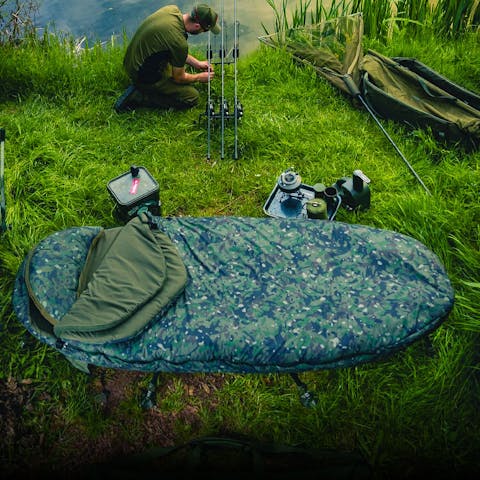 With its completely flat profile, this sleep system provides perfect levelling on uneven banks. This is further facilitated by eight adjustable spring-loaded legs with rotating mud feet, ensuring even load distribution across the frame. No more discomfort or imbalance on irregular surfaces!
