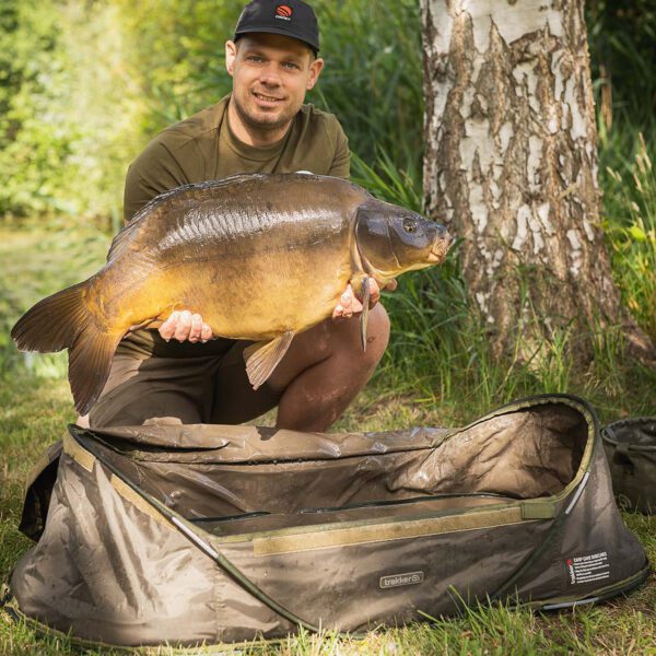 This is based on the ever-popular, quick-erect walled unhooking mat design, and maintains super-fast set-up and pack-down properties. The Sanctuary Insta-Mat offers total protection in a compact, lightweight and user-friendly package. The mat fully unzips to reveal the lightweight outer frame, which once unfolded simply assembles itself, with the open base then positioned inside with the soft PVC material facing upwards, so the mat is assembled and ready for use, with pack-down being just as simple. A twist of the outer frame means it folds down into two neat circles, and this is then placed inside the padded mat, folded in half and zipped up ready for transport. The 50mm thick soft padded base is covered in fish-friendly PVC and offers the utmost protection to fish. The30cm raised ends and reinforced raised side walls maintain structure and eliminate the chance of fish sliding off the mat. There is also a full Velcro fastened top cover to keep lively fish calm and safe. There are webbed straps at either end for pegging the mat down in windy conditions, and hanging it up to dry out at the end of a successful session. The mat doubles up as a very handy stalking seat for the mobile roving anglers, and is perfectly at home for a week-long session on a big pit or just an evening on the river.