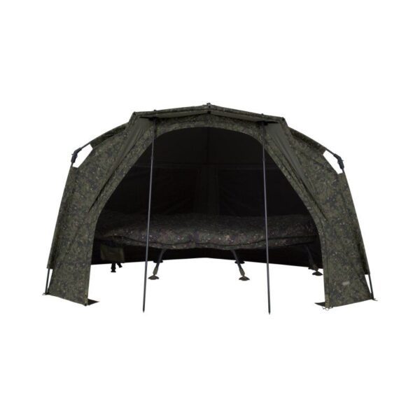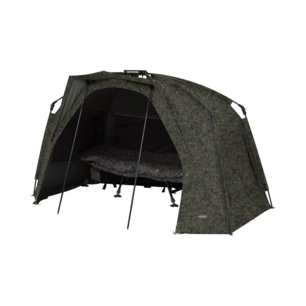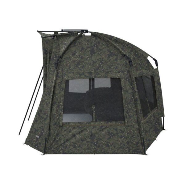 The quickest, “easy-erect” shelter just got even better with the introduction of the phenomenal Tempest RS Brolly Camo. At the core of this one-man fishing bivvy is the renowned, patented hinge block, allowing for ease and speed of set-up. The set-up time, usability and functionality have all been enhanced even further with the Rapid Knuckle System®, enabling all five main poles to lock into position in one effortless action. Simple, secure and strong, erecting your shelter has never been easier. Additional Rapid Shelter enhancements include a built-in peak to minimise water ingress in and around the door and this peak can be increased even further to allow even more coverage with the addition of a Skull Cap. The rear of the shelter has been made flatter than its predecessor, striking an optimal balance between internal storage space, the ability to fit into swims and aerodynamics. Airflow through the shelter has been improved with Adaptive Ventilation® on six vents (four on the rear and two on the front), facilitating air flow even when it is raining. To help stay cooler in the hight of summer, the four rear vents can be pegged out to create areas of shade, which, when used in partnership with a Skull Cap, can reduce the internal temperature by several degrees. For optimal storage, there are four internal pockets, two on each side and two at the front. Those at the front have a hanging loop where you can store essentials such as your receiver or even your jacket for a speedy exit in inclement weather conditions.