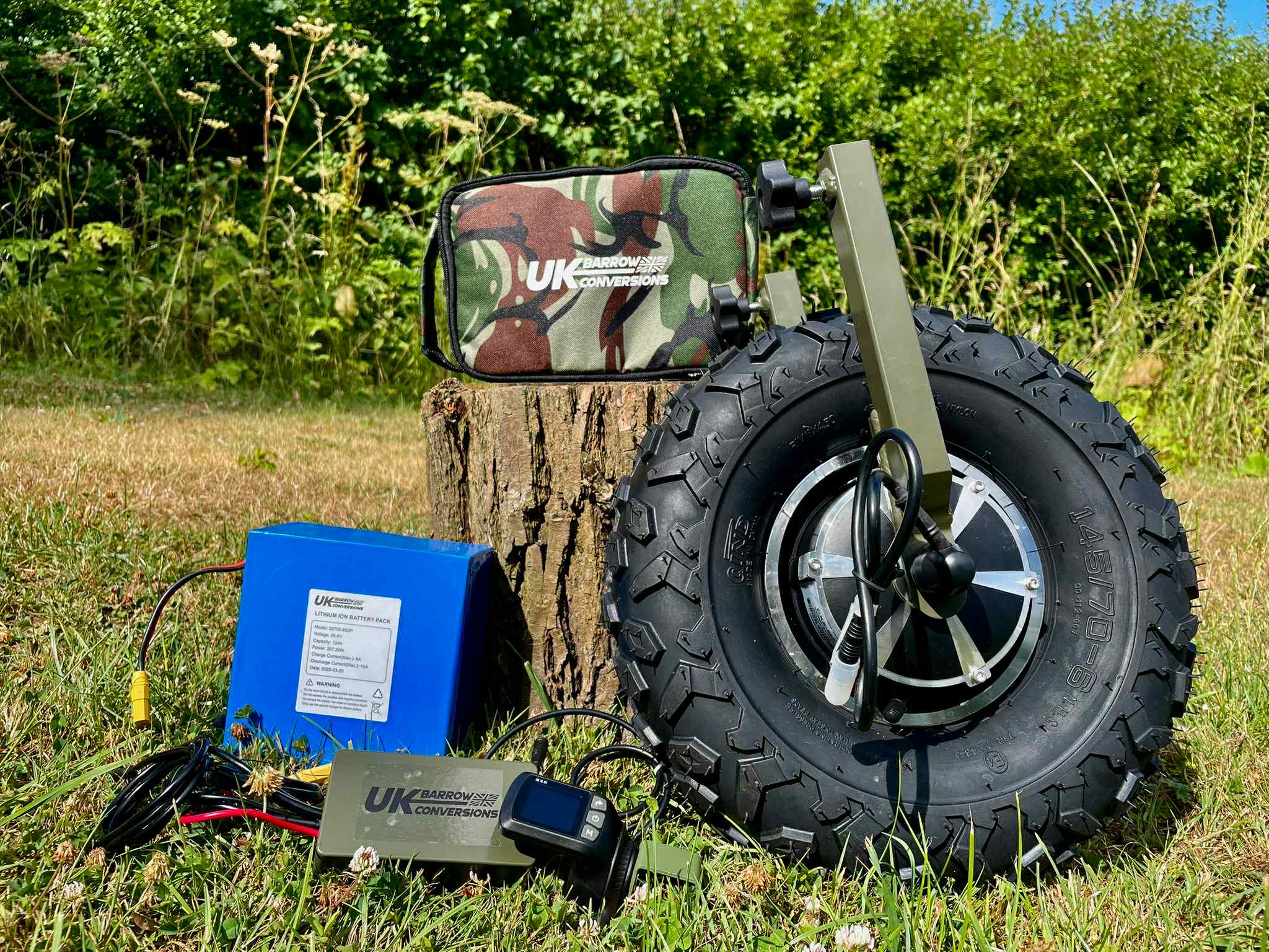 Carrying over 100kg of gear on your barrow can be exhausting. Our Electric Barrow Conversion Kit transforms your barrow into a powerful, motor-assisted workhorse making transport effortless.