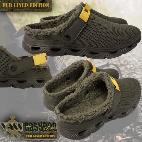 Vass Easy-Bac Fur Edition Fishing Trainers, a special edition of the comfortable extra light Vass Easy-Bac trainers with a fur lining. Super quick and easy to slip on in a hurry, they make ideal footwear for dashing out of your bivvy. With a moveable elasticated strap that can be pushed forward for fast access. That same strap can be pulled back over your heel for longer walks ensuring they stay put.