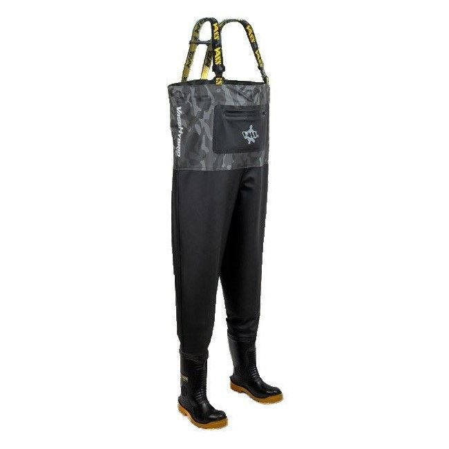 Vass Hybrid 700 Dark Camo Edition Chest Waders, a new version of the best selling Hybrid 700 series. A bringing together of the Vass E-Boot fused to a tough Vass Tex 700 lower and lightweight flexible 350 upper. The camo edition also features the VRLR Vass Reduced Light Reflection stealth finish. Giving improved stealth in bright sunshine, reducing the reflection and glare. A set of waders that retain upper body freedom of movement, whilst having the increased durability of the lower where it counts! Manufactured with reliable quad welded seams and featuring the super tough and grippy Vass E boots. There’s an external zipped waterproof pocket, and an unzipped interior pocket to carry a few essentials.