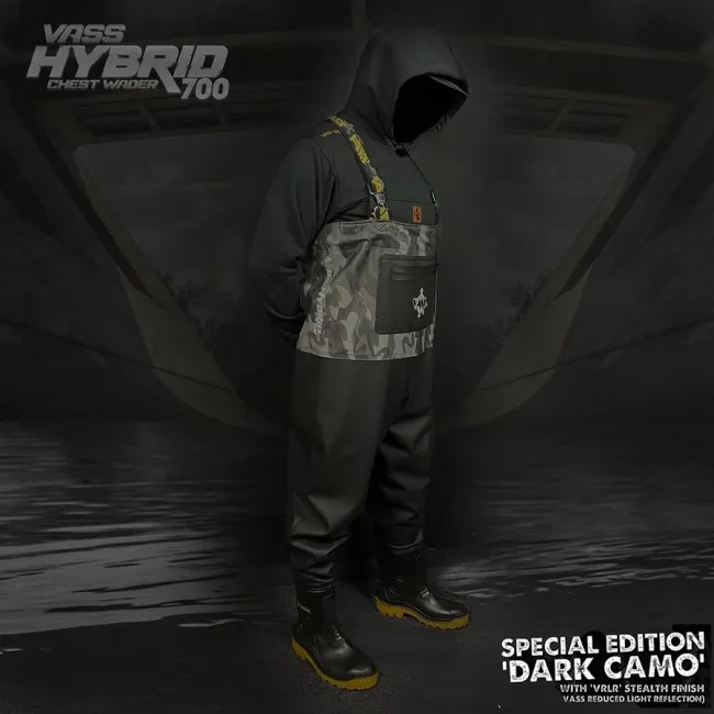 Whether you’re an experienced angler or just starting out, the Vass Hybrid 700 Dark Camo Chest Wader Non-Studded provides an unmatched combination of stealth, comfort, and robustness.