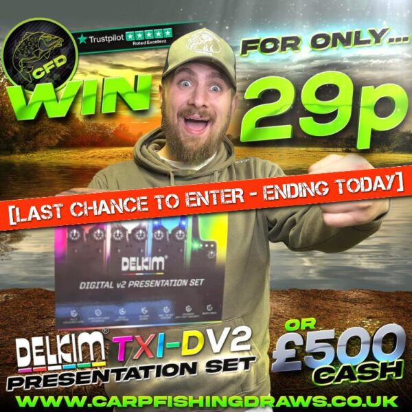 The live draw will take place on the Carp Fishing Draws Facebook page using Google’s random number generator to select the winning ticket number from all Entrants.